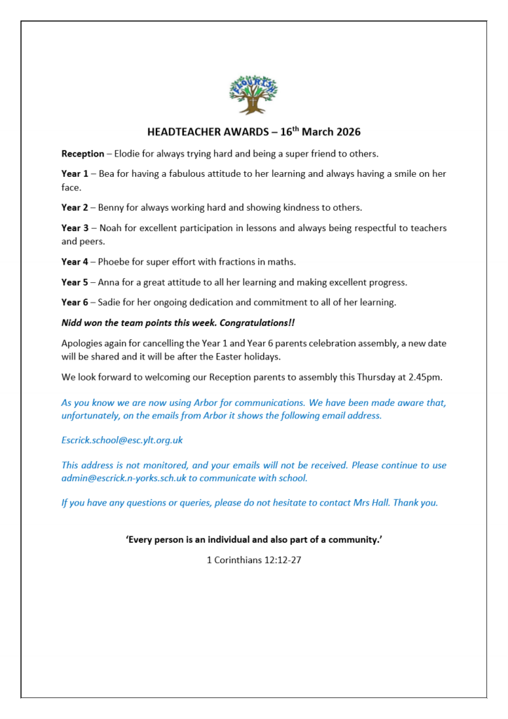 Website Privacy Notice, Copyright, Cookies Information and Website Disclaimer. All Rights Reserved | © 2026 Escrick Primary School - WordPress Theme by Kadence WP